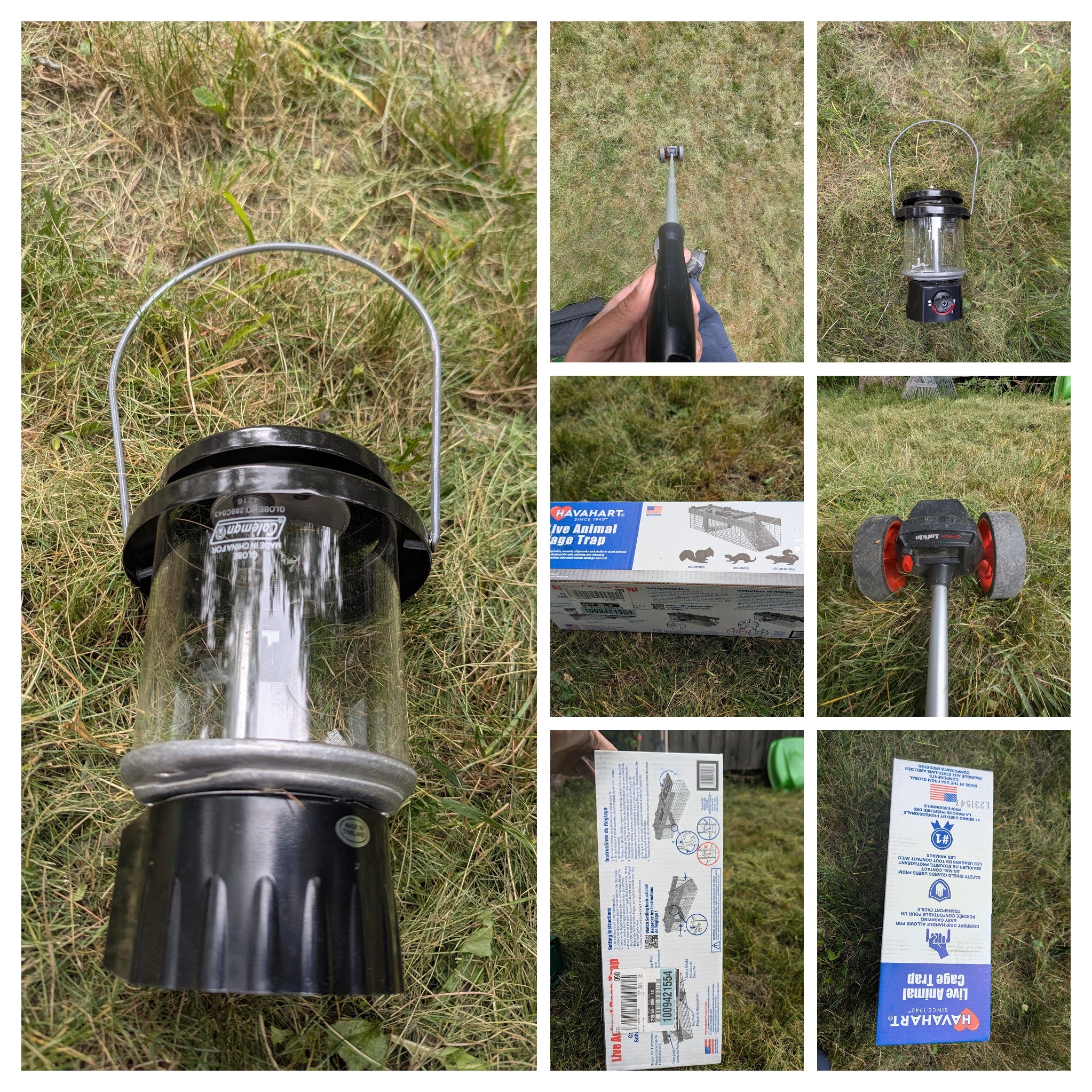 At the top there is the tool to measure land, one camping torch with missing burner wools on both lighting. The critter boxes are new and 2 in quantity.
